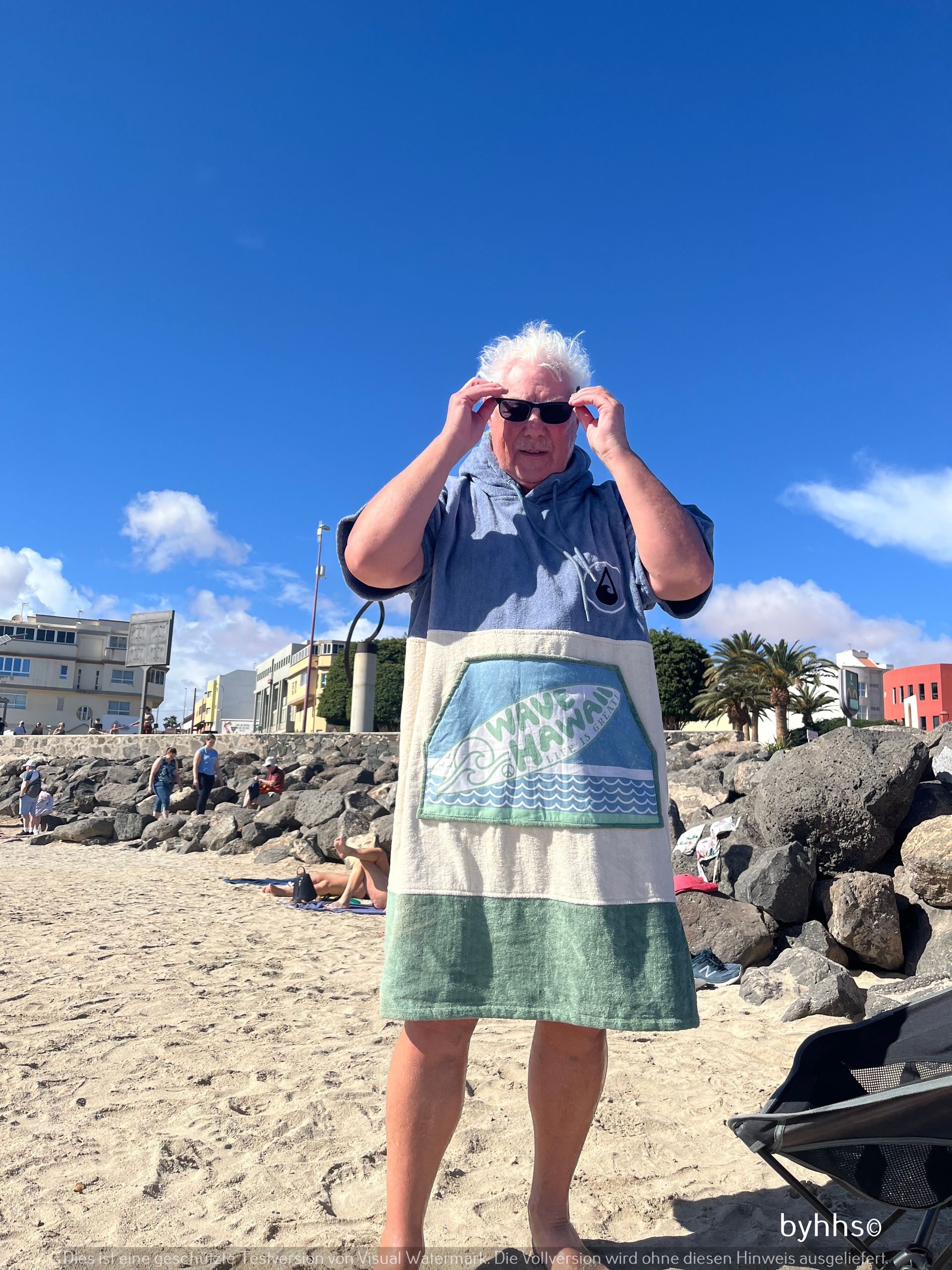 Der Poncho hat sich bewährt nach dem Schwimmen; Wasser hatte 19 Grad - also erfrischend